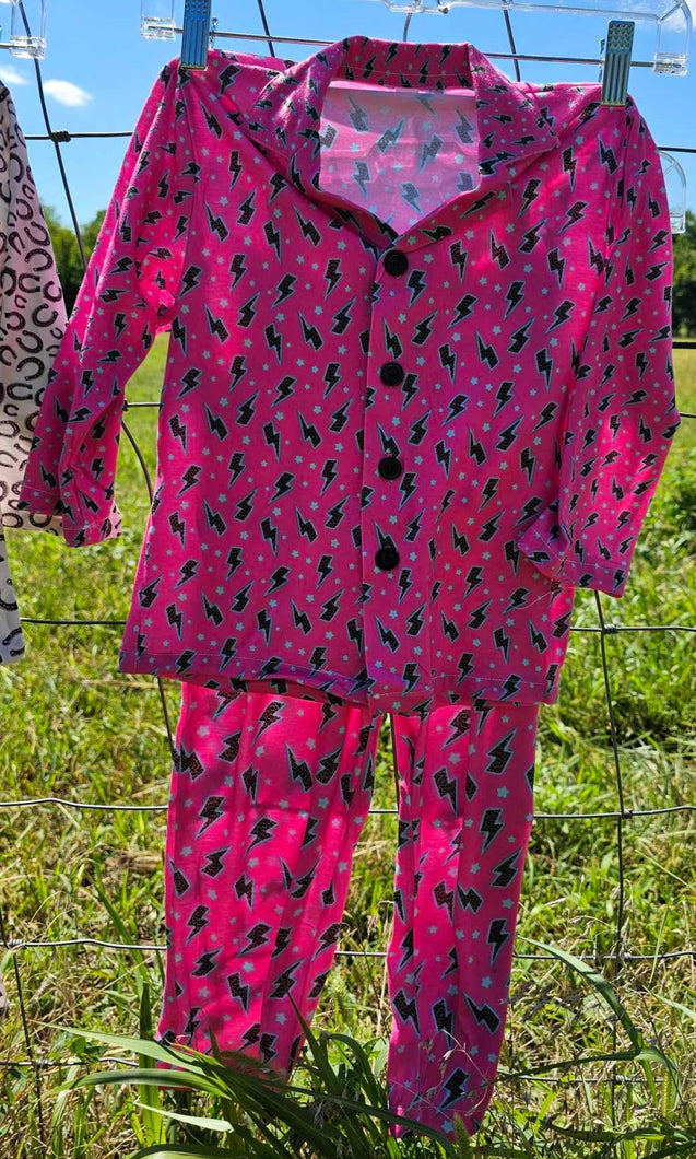 Hot Pink Lightning Bolt Girl's Western Pajama Set