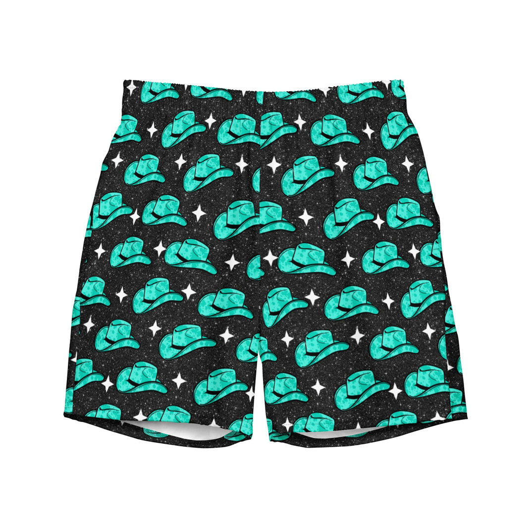 Yeehaw Turquoise Hat Men's Swim Trunks
