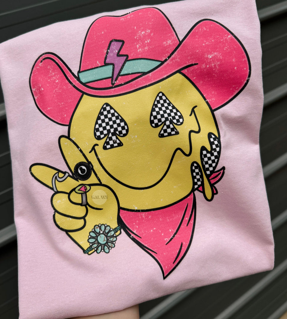 Hot pink checker face peace sign tee or sweatshirt
