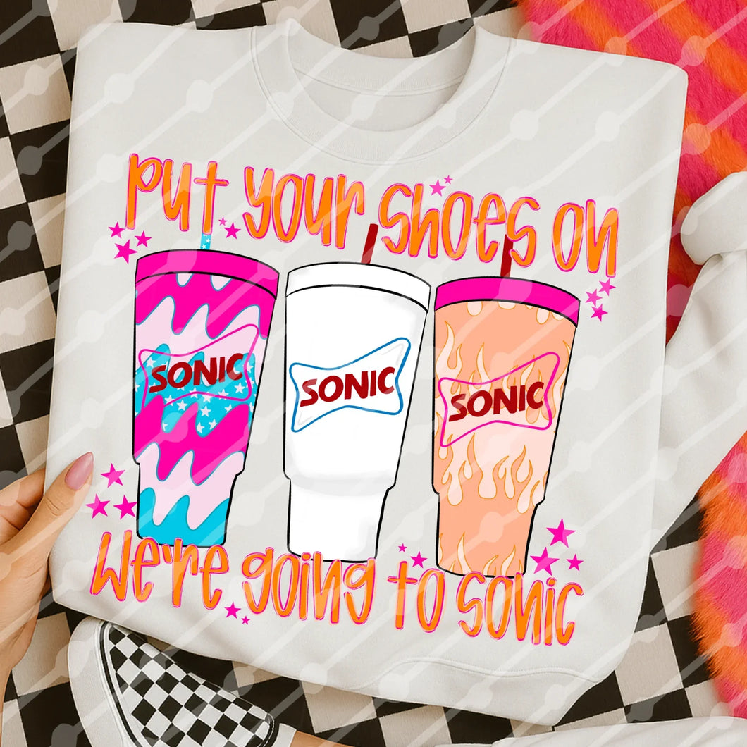 Put your shoes on we’re going to sonic tee or sweatshirt