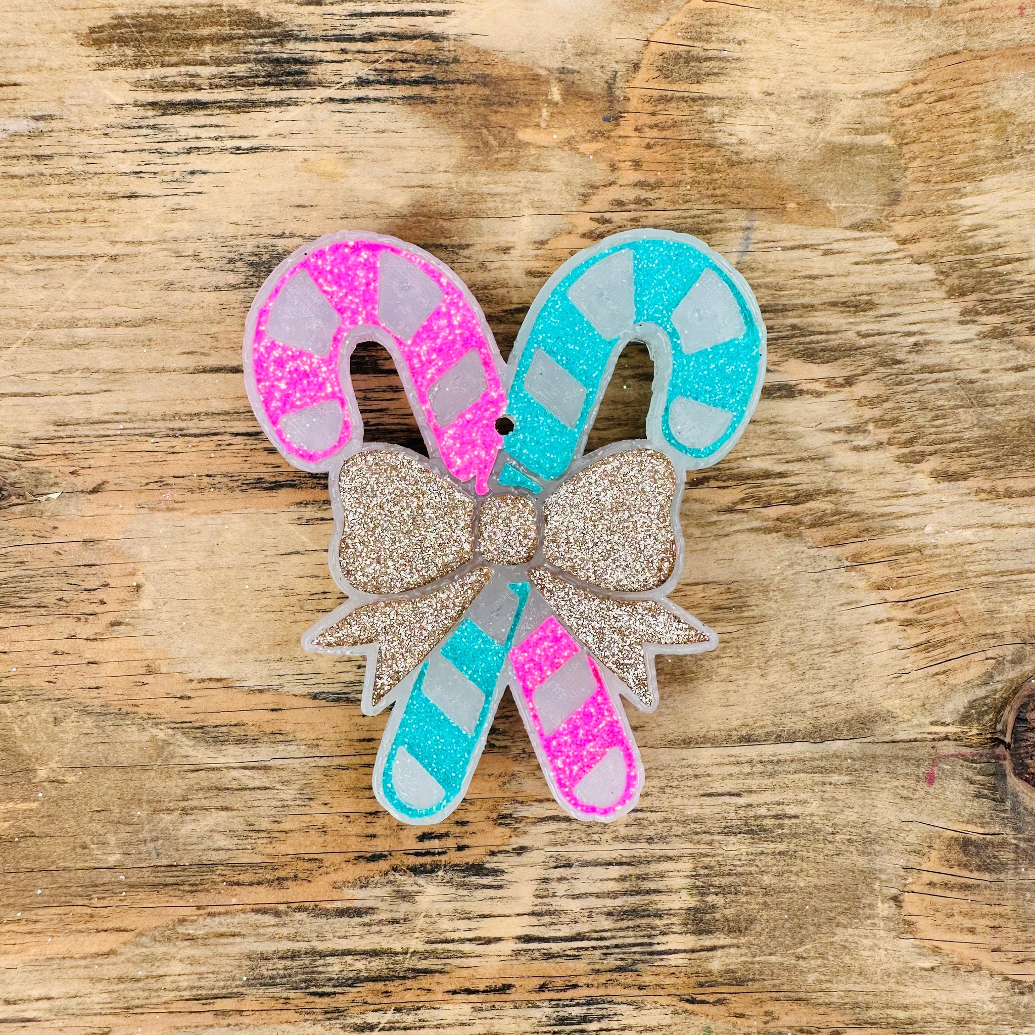 • Load image into Gallery viewer, Christmas Candy Canes with a Bow Car Freshie